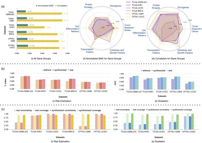 - 超越单模态: 将“真实的病理图像” + “合成的基因数据”结合使用,其诊断(分级)和预后(生存期)预测的准确率,显著优于仅使用病理图像。